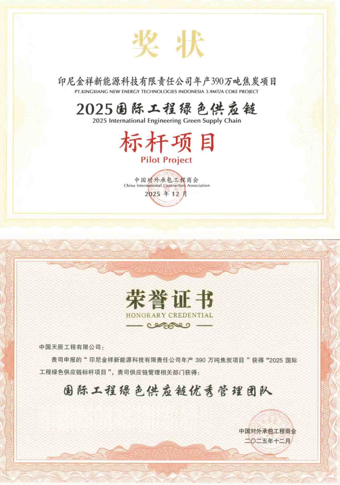 Awards! 印尼金祥焦炭项目获评“2025国际工程绿色供应链标杆项目”