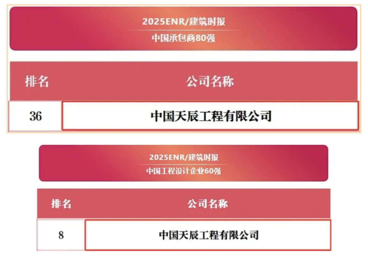 Good News!Recently, CNCEC-TCC proudly secured spots on the 2025 rankings of China’s Top 80 Contractors and China’s Top 60 Engineering Design Firms, jointly released by the Engineering News-Record (E...